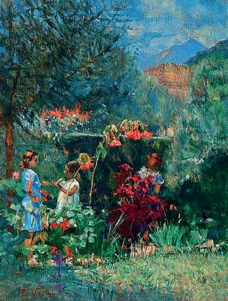 VISCONTI, E. Três meninas no jardim. Óleo sobre tela,