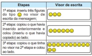 Uma criança, utilizando um aplicativo, escreveu uma mensagem para enviar a um amigo. Essa mensagem foi escrita seguindo estas etapas: