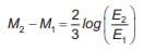 Em uma região com grande incidência de terremotos, observou-se que dois terremotos ocorridos apresentaram magnitudes M1 e M2, medidos segundo a escala Richter, e liberaram energias iguais a E1 e E2, respectivamente. Entre os estudiosos do assunto, é conhecida uma expressão algébrica relacionando esses valores dada por