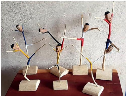 FARIAS, Y. Bailarino entalhado em gravetos de madeira. Artesanato em madeira, 20 × 13 × 51 cm. Ilha do Ferro (AL). Disponível em: www.nidelins.com.br. Acesso em: 5 fev. 2025.