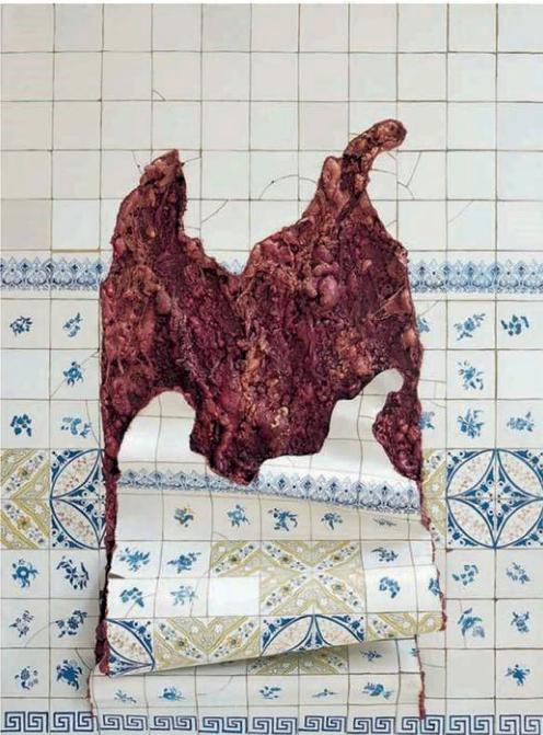 VAREJÃO, A. Azulejaria em carne viva. Óleo sobre tela, poliuretano, madeira e alumínio, 160 × 200 × 25 cm. 1999.