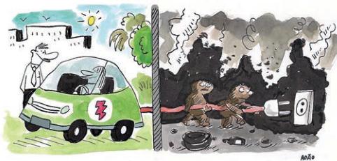 No que se refere ao desenvolvimento sustentável, a charge e o texto indicam uma contradição no uso da tecnologia alternativa derivada do seguinte aspecto: