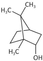 Em uma aula prática de química orgânica, um professor identificou os frascos de várias substâncias apenas por suas fórmulas moleculares. Em seguida, apresentou a representação tridimensional da molécula do borneol, um álcool secundário, conforme a figura. Ele explicou que, quando oxidado, o borneol dá origem à cânfora, uma cetona usada desde a Antiguidade como incenso e no preparo de medicamentos. Finalmente, o professor solicitou que os alunos identificassem o frasco contendo a substância cânfora.
