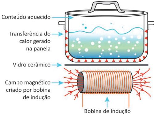 O aquecimento em fogões por indução utiliza bobinas para produzir um campo magnético variável. Essa bobina se localiza abaixo do vidro cerâmico sobre o qual a panela se apoia. O mecanismo aquece apenas a panela que se encontra na zona de cozimento, o que é uma das principais vantagens em relação ao uso do fogão a gás ou de resistência elétrica.