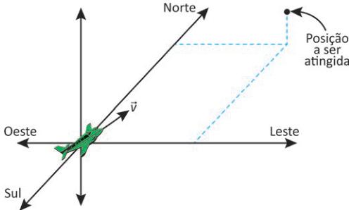 Durante a ação do vento, a velocidade v⃗ que o piloto deve estabelecer em relação ao ar para que o avião chegue à posição esperada no tempo indicado tem as componentes