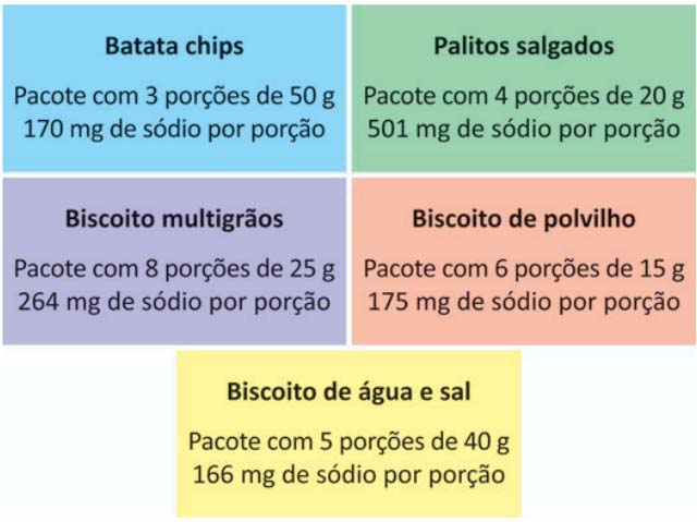Uma estudante opta sempre pelo alimento com a menor quantidade total de sódio por pacote.