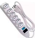Réguas elétricas são dispositivos que permitem a ligação segura e simultânea de dois ou mais aparelhos eletroeletrônicos à rede elétrica. Uma estudante comprou uma régua com seis tomadas, conforme a figura. Essa régua suporta uma intensidade máxima de corrente elétrica igual a 20 A. Acima desse valor, o fusível de segurança da régua se rompe, inutilizando-a até que um novo fusível seja instalado. Considere as potências nominais de alguns aparelhos eletroeletrônicos apresentadas no quadro.